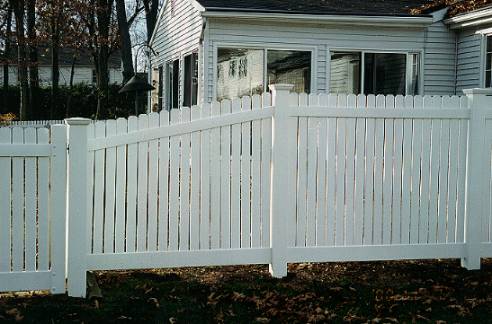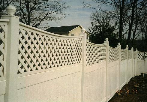 Beautiful vinyl private fence with scallops Long lasting vinyl fence for excellent enclosures Lattice PVC with many styles available 1/2" spaced picket privacy fence allows air flow with "New England caps"